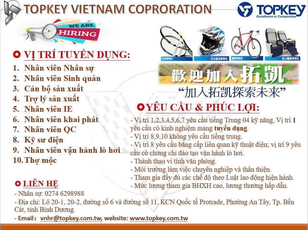 Hệ Đào Tạo, Việc làm - Ứng tuyểnTopkey Việt Nam tuyển dụng nhiều vị trí 20 Th1 Topkey Việt Nam tuyển dụng nhiều vị trí